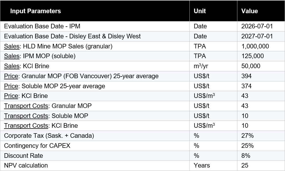 The economic analysis evaluates the Disley Project as a phased development consisting of the IPM to establish early cash flow, followed by the full-scale HLD Mine comprising Disley West and Disley East. The IPM was evaluated as a standalone project, with the HLD Mine (Disley East and Disley West) assessed on an incremental basis and in combination with the IPM as an overall project. A Discounted Cash Flow (“DCF“) model was constructed with the following assumptions: