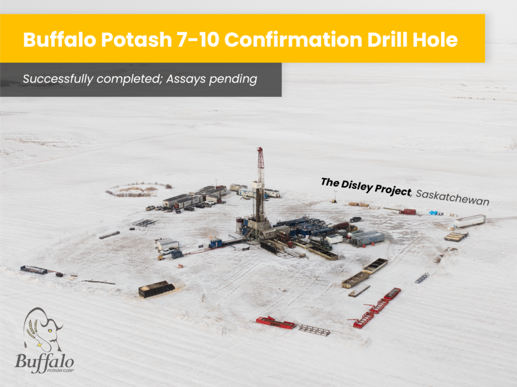 Mr. Steve Halabura P.Geo., Buffalo Chief Executive Officer, commented: “Buffalo’s Disley Project is not only exceptional due to its location within Saskatchewan’s established potash solution mining district, in close proximity to some of the largest operating potash solution mines in the world(2), but also because of the historic technical work completed on the property to date.”